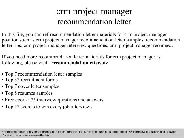 Crm Project Manager Recommendation Letter