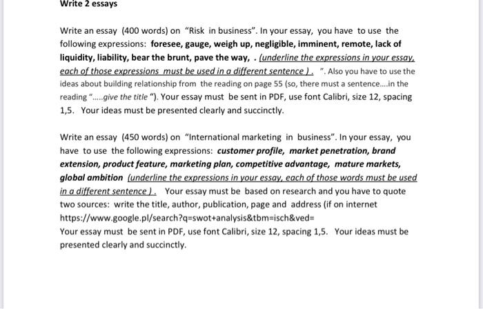 Write 2 Essays Write An Essay 400 Words On Risk In Chegg Com