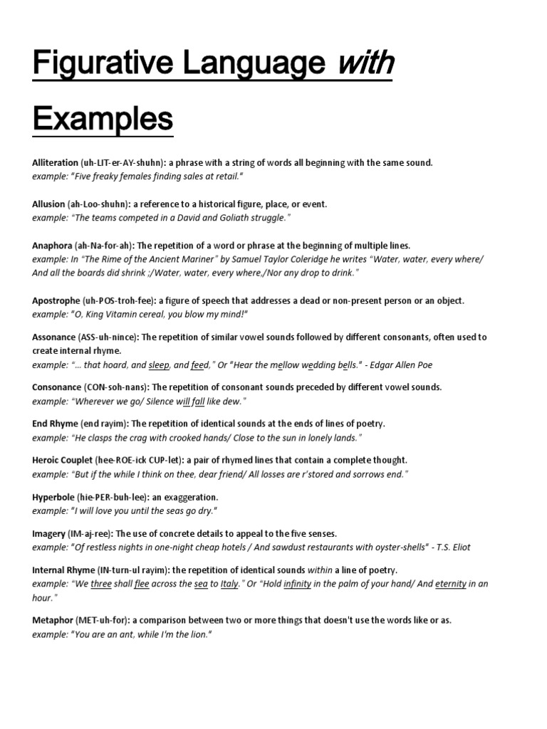 Stooping to the ground Sarah smelled the sweet scarlet flower. We get the term figure of speech from figurative language. Common Examples of Figurative Language.