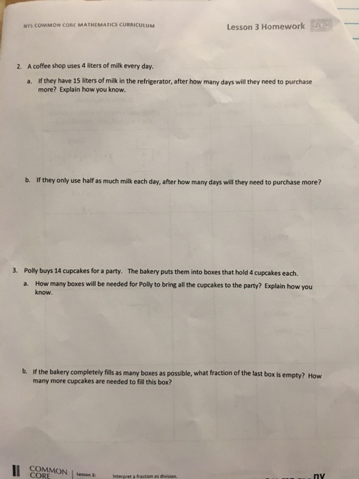 Nys Common Core Mathematics Curriculum Lesson 3 Chegg Com